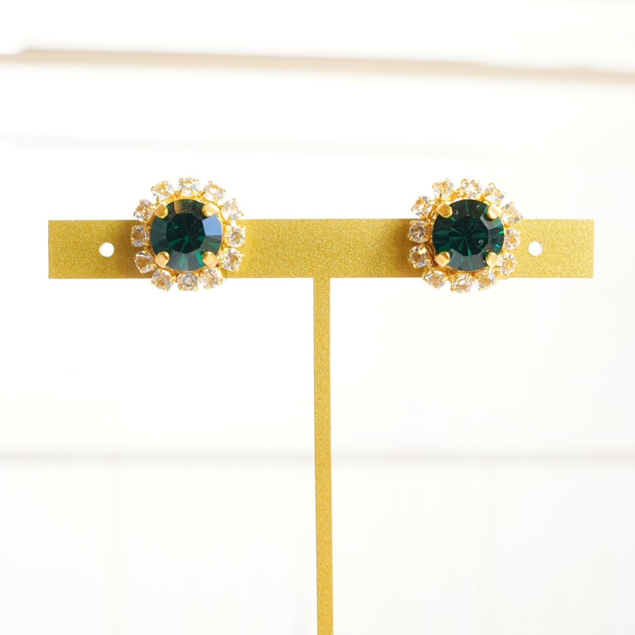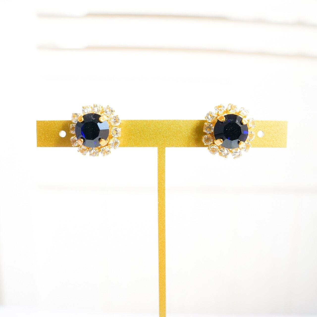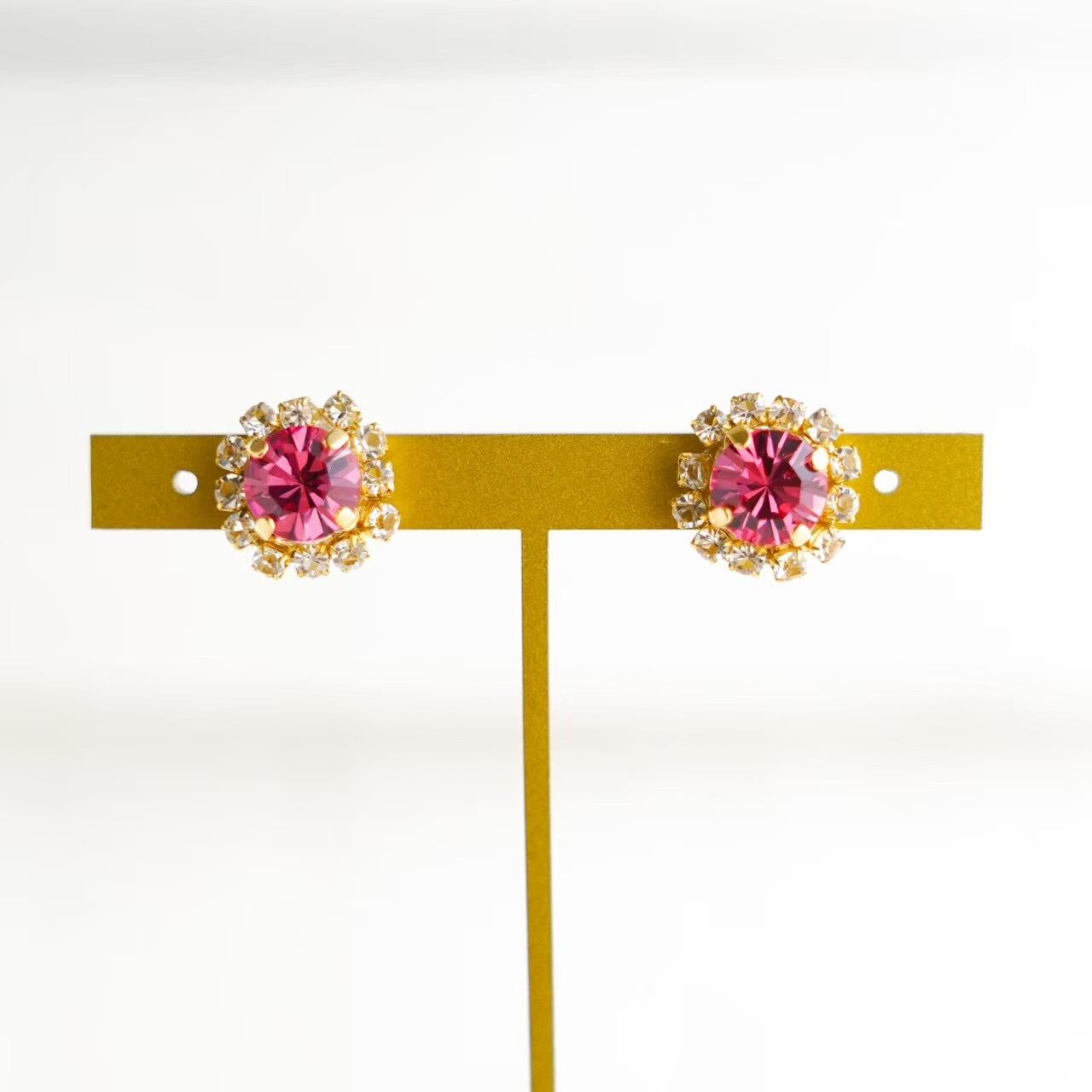 舞台のスポットライトのもと、キラリと輝くクリスタルガラスのビジューピアス。