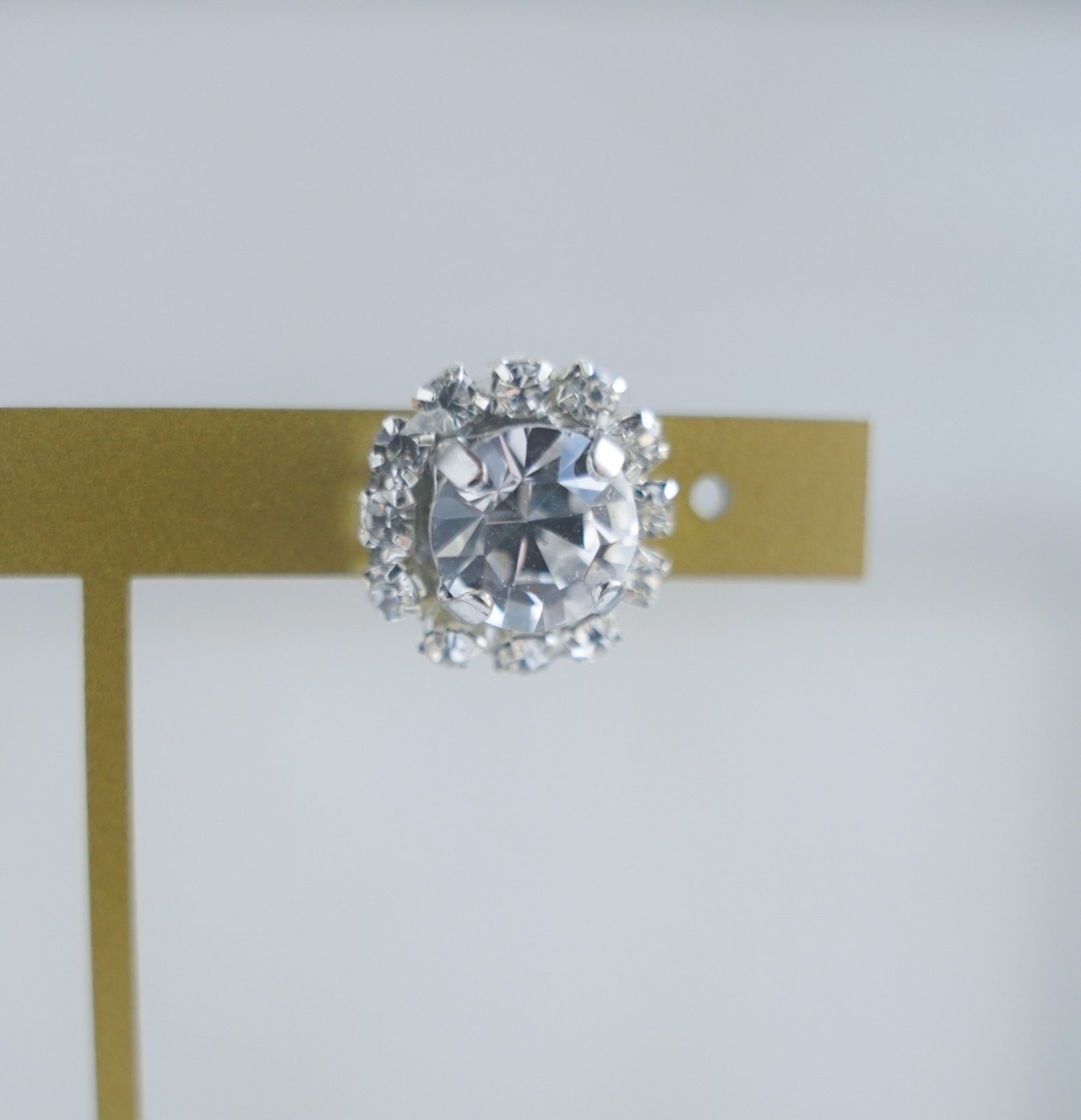 舞台のスポットライトのもと、キラリと輝くクリスタルガラスのビジューピアス。